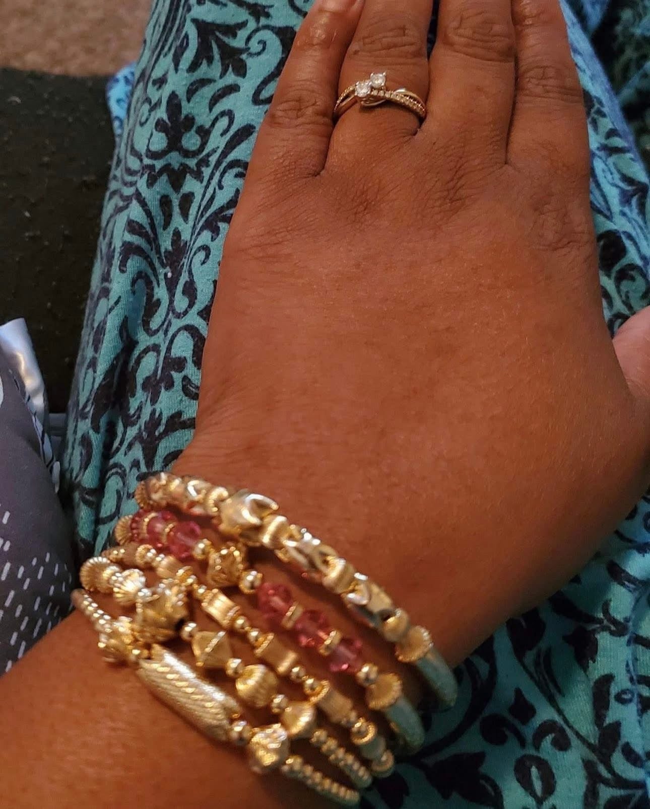 This handcrafted 5-piece bracelet set includes one gold bangle, one crystal-accented bracelet, and three gold beaded stretch bracelets. Each set is uniquely handmade, so designs may vary slightly — giving you a one-of-a-kind look.