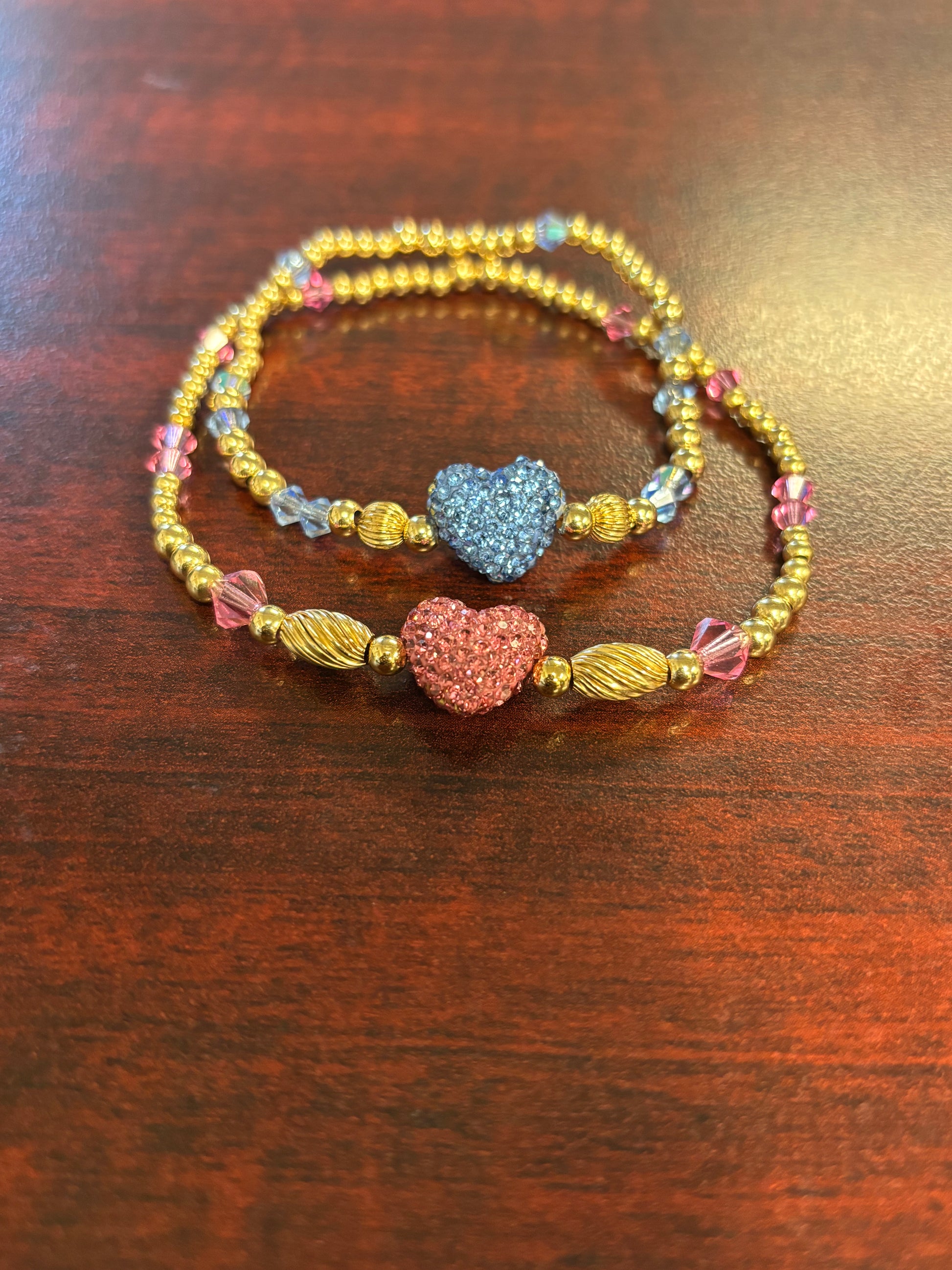 Select one heart color for each bracelet or choose different colors for each.