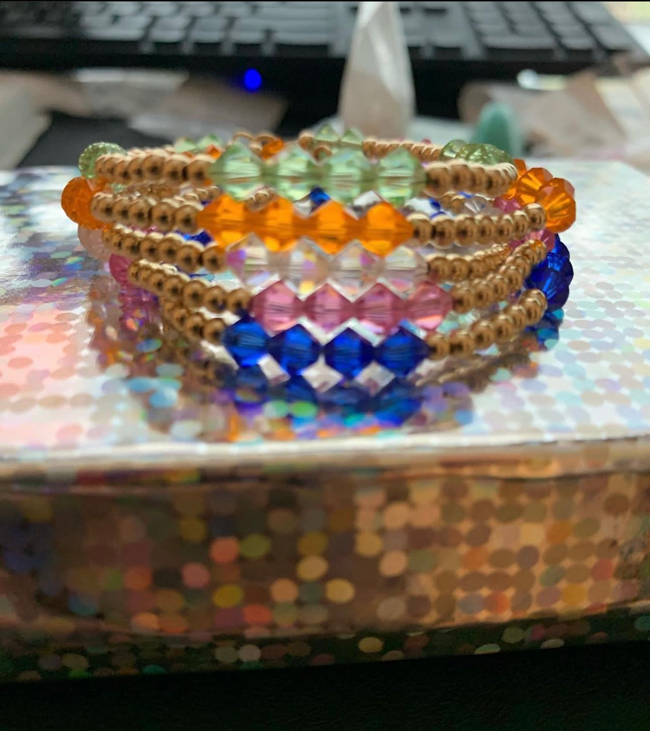 Colors Shown:5mm Swarovski and 4mm Gold Beads. Periodt, Sun, Crystal, Rose, & Sapphire