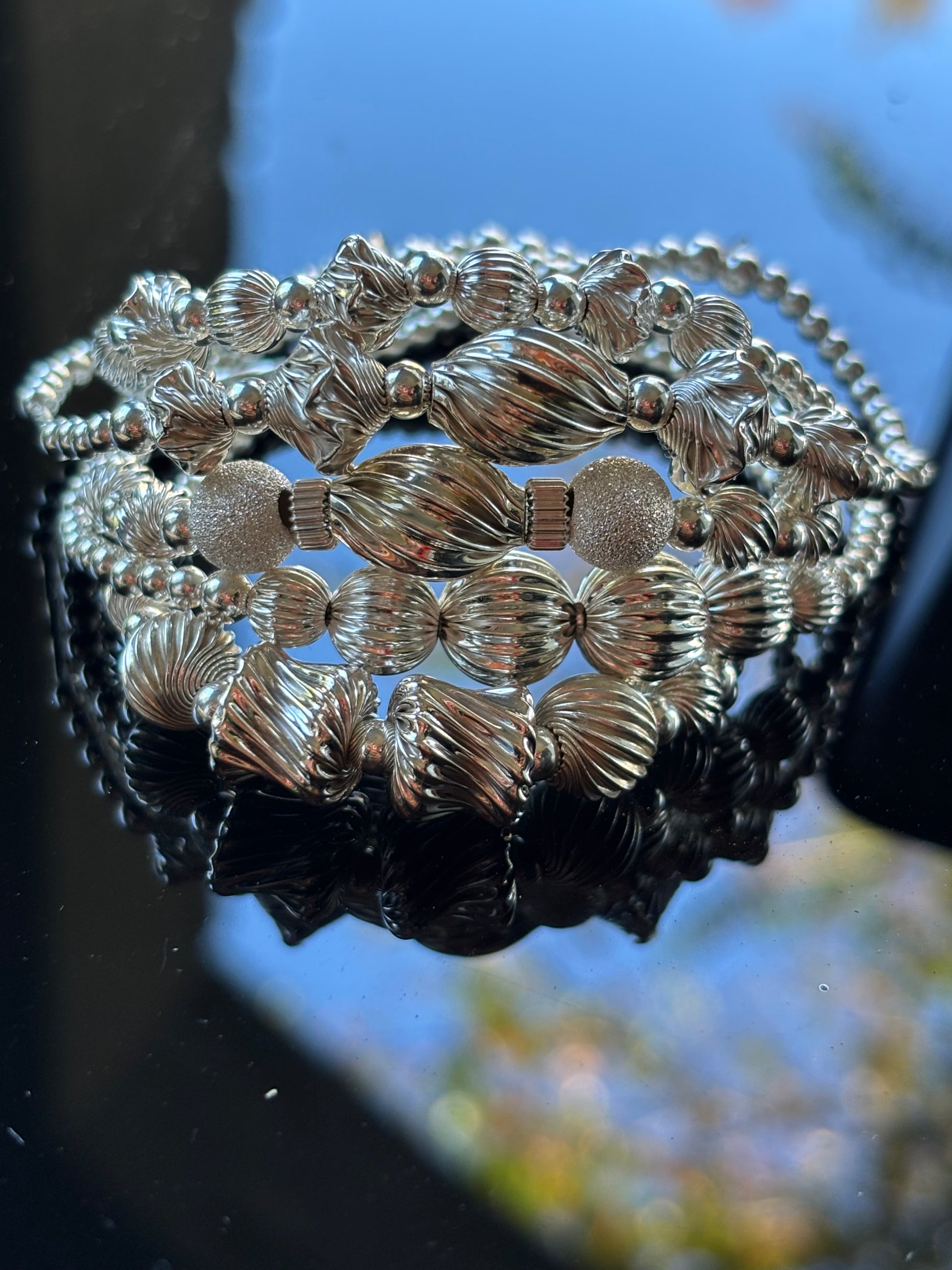 Price is for 5 Silver bracelets shown. Design my slightly differ